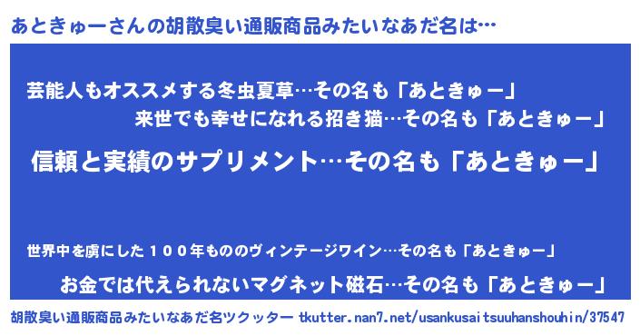 | 意味不明あだ名 | 『とにかく怪しいあときゅー』 |