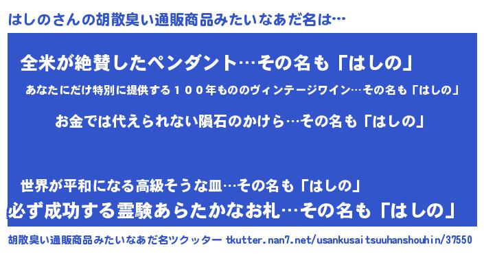 | ヒーロー風カッコイイあだ名 | 『慈愛の使者はしの』『炎刃騎士ハシ』 |