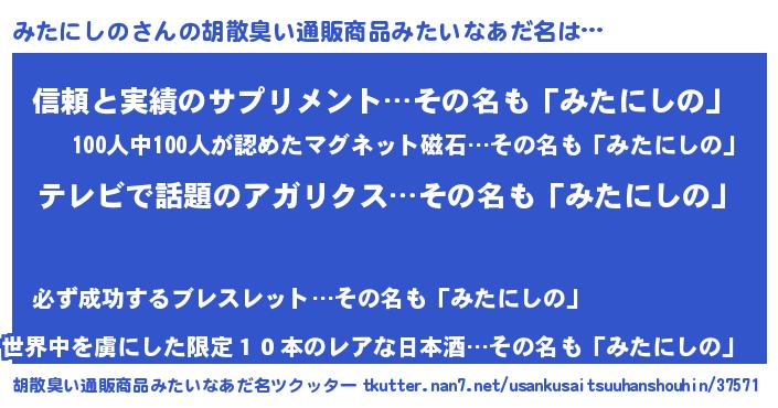 | 男性向けラノベタイトル風あだ名 | 『Re:みたにしのから始める異世界生活』 |