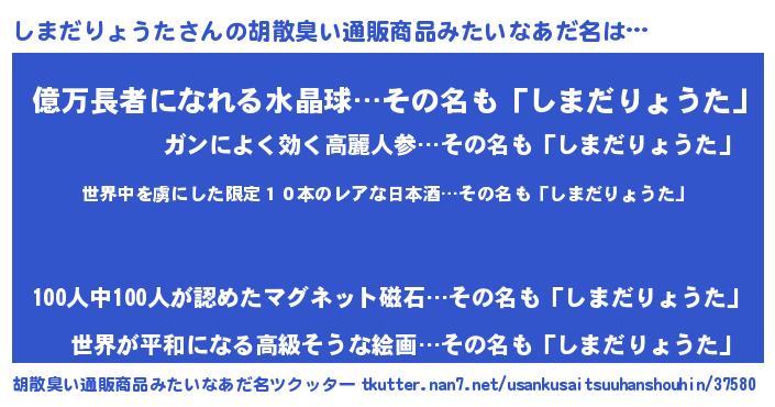 | ヘコむあだ名 | 『しまふぇ~』『酢こんぶ』 |