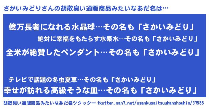 | 意味不明あだ名 | 『とにかく怪しいさかいみどり』 |