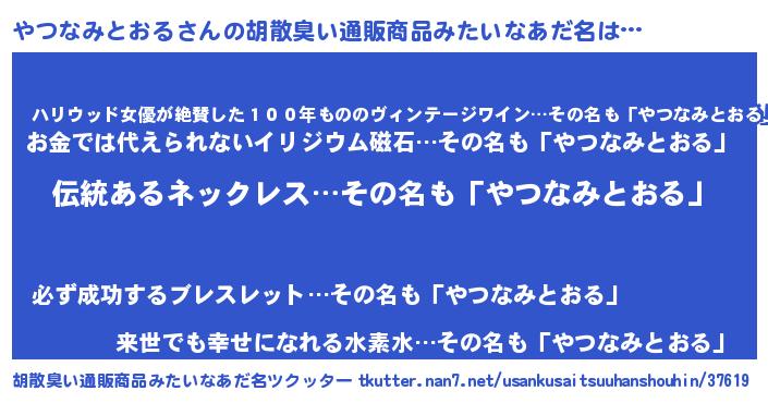 | 欧米人風あだ名 | 『ウサインやつなみとおる』 |
