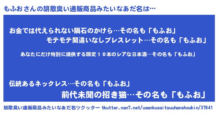 | 意味不明あだ名 | 『住所不定無職もふお(56歳)』 |