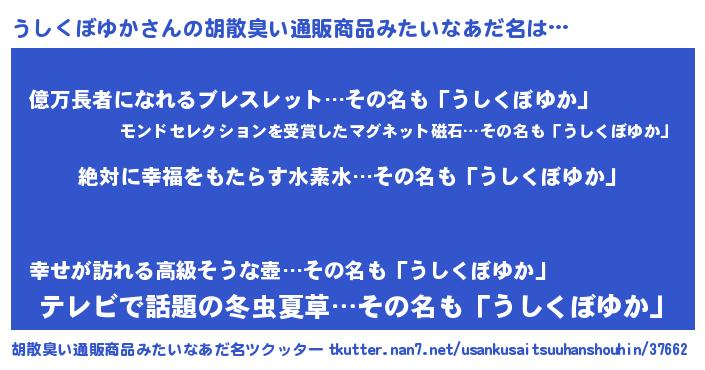 | 男性向けラノベタイトル風あだ名 | 『うしくぼゆかという概念が存在しない退屈な世界 』 |