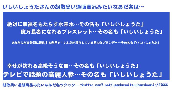 | 意味不明あだ名 | 『住所不定無職いしいしょうた(89歳)』 |