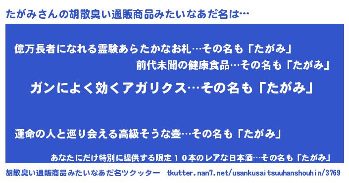 | ヘコむあだ名 | 『たがふぇ~』『たがみ(遠い目)』 |