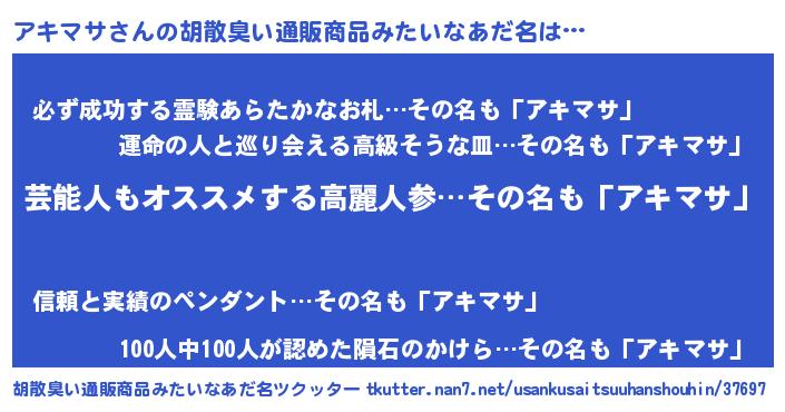 | 意味不明あだ名 | 『自称アキマサ』『ペロリンアキマサ』 |