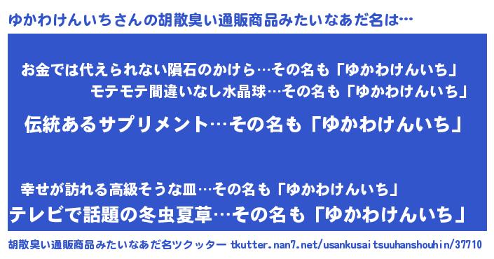 | 意味不明あだ名 | 『とにかく怪しいゆかわけんいち』 |