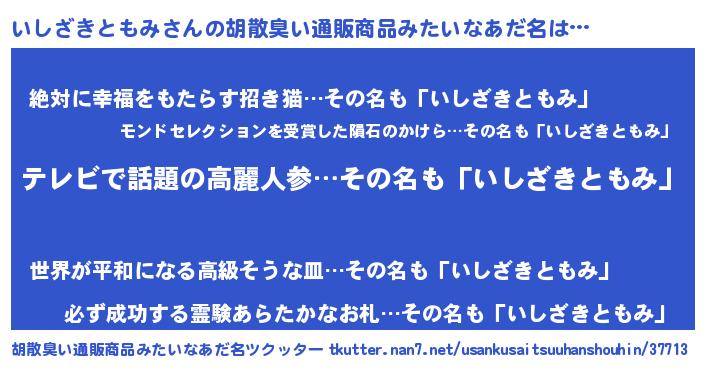 | 男性向けラノベタイトル風あだ名 | 『Re:いしざきともみから始める異世界生活』 |