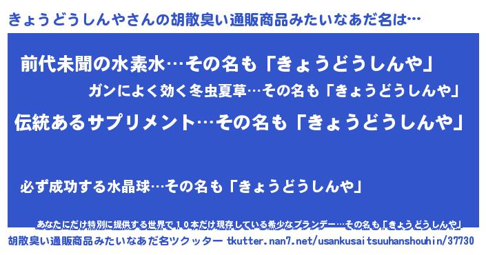 | 意味不明あだ名 | 『とにかく怪しいきょうどうしんや』 |
