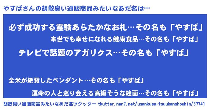| 意味不明あだ名 | 『自称やすば』『ペロリンやすば』 |
