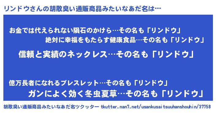 | ヘコむあだ名 | 『リン太郎』『リンドウ(遠い目)』 |