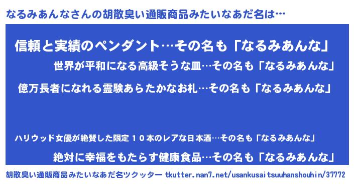 | 男性向けラノベタイトル風あだ名 | 『うちのなるみあんなが世界を掌握している!』 |
