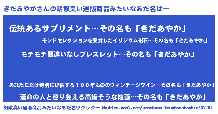 | 欧米人風あだ名 | 『アンジェラ・きだあやか』 |