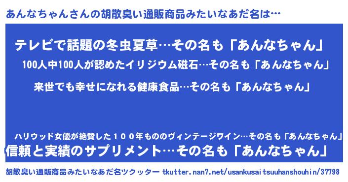 | 恥ずかしいあだ名 | 『あんちん』『アンナチャンデラックス』 |