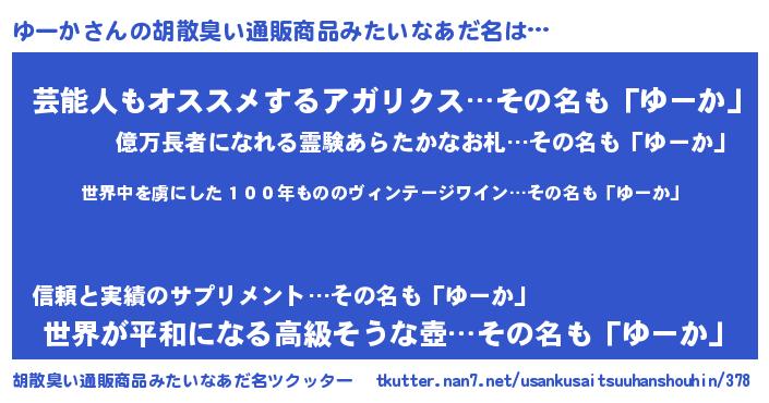 | 欧米人風あだ名 | 『ゆーか・ステッグマイヤー』 |