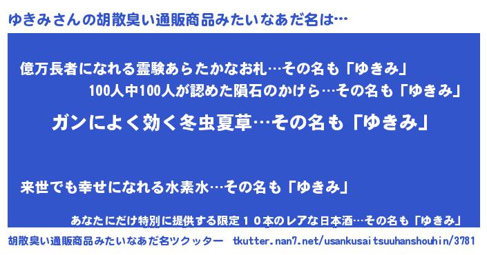 | ヘコむあだ名 | 『ゆきっふぃ~』『ゆきみ(遠い目)』 |