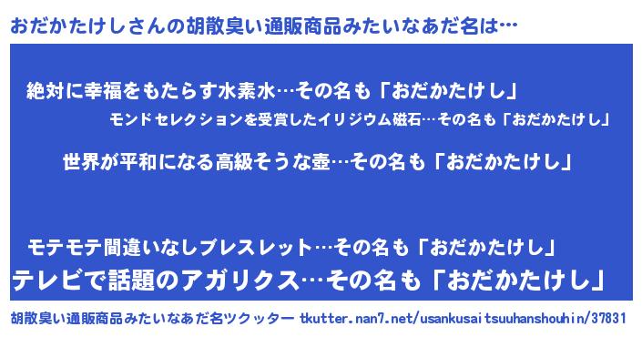 | 意味不明あだ名 | 『おだかたけしフォーエバー』 |