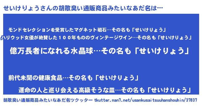 | 意味不明あだ名 | 『ペロリンせいけりょう』 |