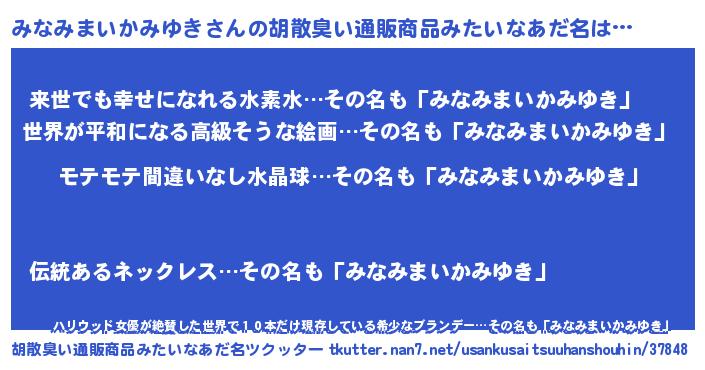 | ヘコむあだ名 | 『みなにゅー』『みなみまいかみゆき(爆)』 |