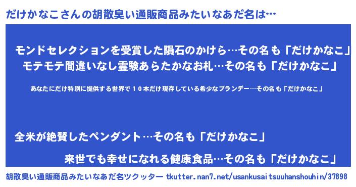 | 意味不明あだ名 | 『住所不定無職だけかなこ(77歳)』 |