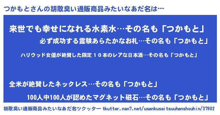 | 意味不明あだ名 | 『住所不定無職つかもと(39歳)』 |