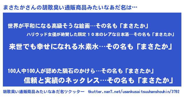 | ヒーロー風カッコイイあだ名 | 『ネオマサタカ』『ウルトラまさたかマン』 |