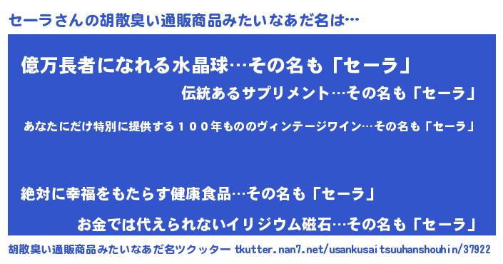 | 男性向けラノベタイトル風あだ名 | 『うちのセーラが世界を掌握している!』 |
