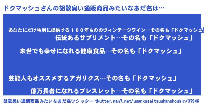 | ヘコむあだ名 | 『ドクマッシュ(爆)』『ドクっふぃ~』 |
