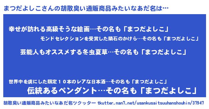 | 意味不明あだ名 | 『自称まつだよしこ』 |