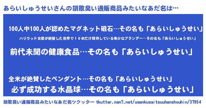 | 意味不明あだ名 | 『永久保存あらいしゅうせい』 |