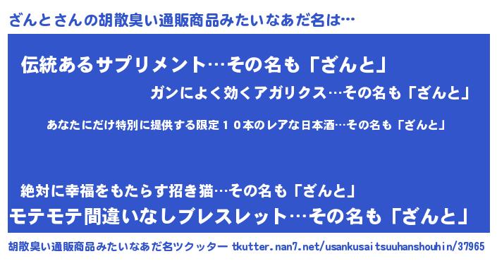 | 意味不明あだ名 | 『住所不定無職ざんと(40歳)』『自称ざんと』 |
