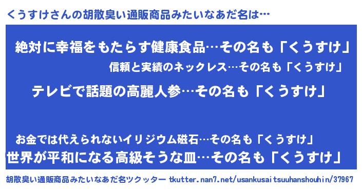 | 意味不明あだ名 | 『自称くうすけ』『永久保存くうすけ』 |