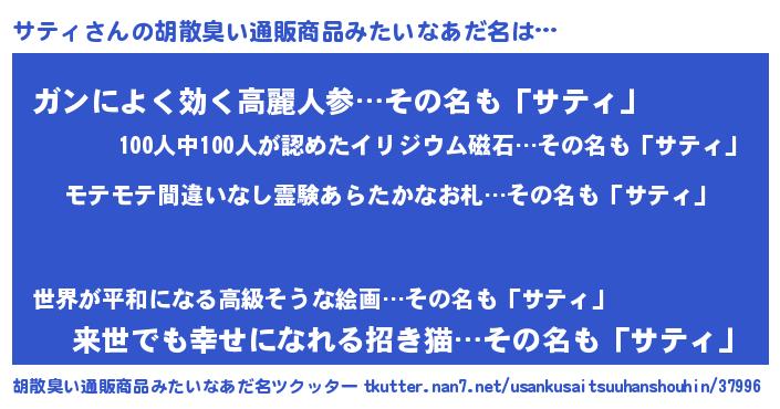 | 男性向けラノベタイトル風あだ名 | 『サティの憂鬱』『魔法科高校のサティ』 |