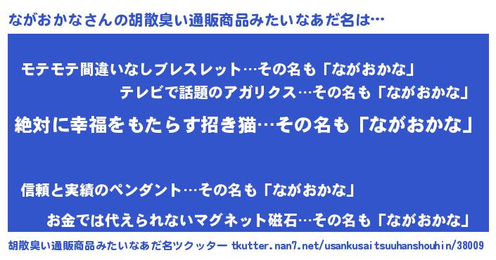 | 女子向けラノベタイトル風あだ名 | 『異世界で失敗しない100のながおかな』 |