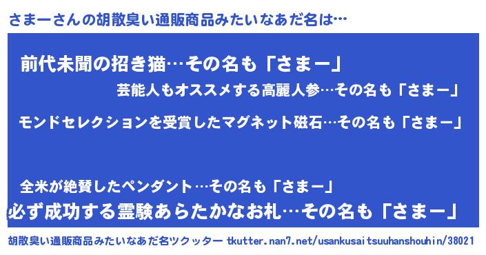 | ヘコむあだ名 | 『さまー(小並感)』『さまにー』 |