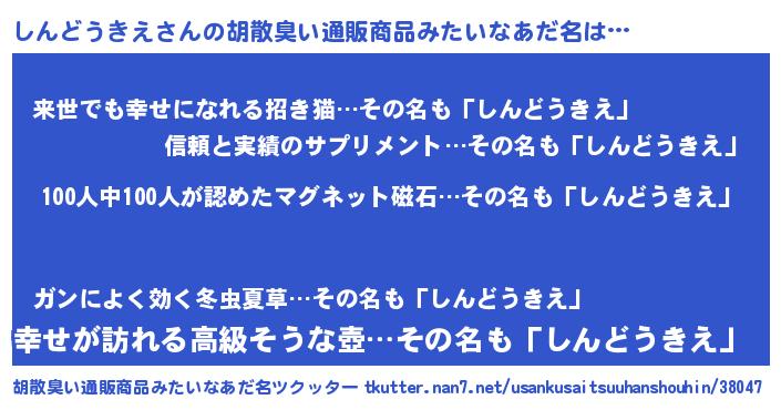 | ヘコむあだ名 | 『しんどうきえ(笑)』『豆乳』 |