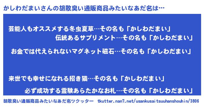 | ヒーロー風カッコイイあだ名 | 『愛の使者かしわだまい』『黄金騎士カシ』 |
