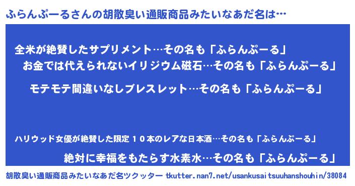 | 男性向けラノベタイトル風あだ名 | 『フランプールアートオンライン』 |