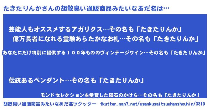 | 意味不明あだ名 | 『住所不定無職たきたりんか(12歳)』 |