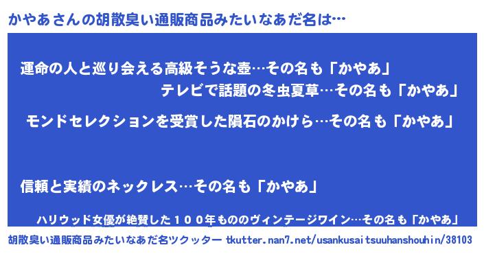 | ヘコむあだ名 | 『酢こんぶ』『かやっちょ』 |