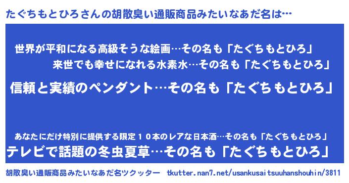 | 意味不明あだ名 | 『とにかく怪しいたぐちもとひろ』 |