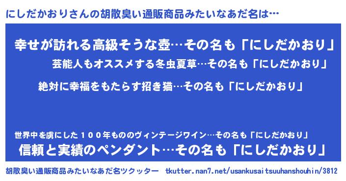 | 肩書あだ名 | 『にしだかおり中佐』『にしだかおり塾長』 |