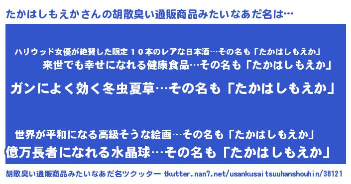 たかはしもえかさんの胡散臭い通販商品みたいなあだ名をツクッター!