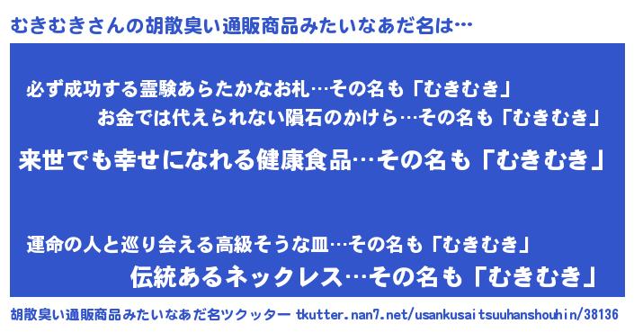 | ヘコむあだ名 | 『むきむき(爆)』『むきっふぃ~』 |