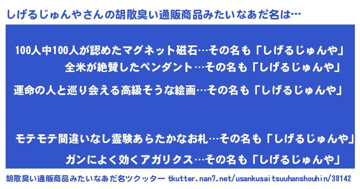 | 男性向けラノベタイトル風あだ名 | 『しげるじゅんやに滅ぼされるだけの簡単なお仕事です』 |
