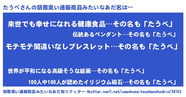 | ヘコむあだ名 | 『たうにー』『たうべ(小並感)』 |