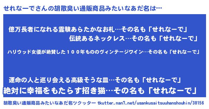 | 意味不明あだ名 | 『住所不定無職せれなーで(12歳)』 |