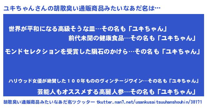 | 男性向けラノベタイトル風あだ名 | 『ノーゲーム・ノーユキチャン』 |
