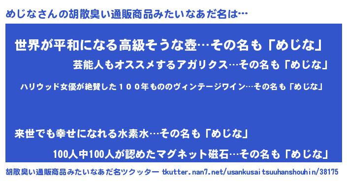 | 欧米人風あだ名 | 『ダレノガレめじな』『トリンドルめじな』 |